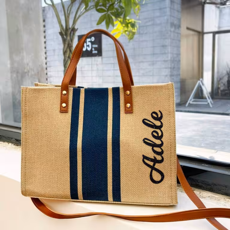Personalised Vintage Bliss Burlap Beach Bag