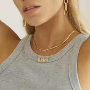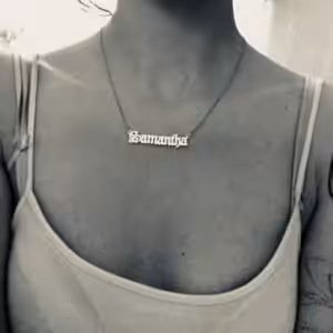 This 18k Gold over 925 Sterling Silver name necklace! Personalize this script style name pendant with the name of your choice. It also comes with a shimmering 18k Gold over 925 Sterling Silver Link Chain. You may choose any name up to 10 letters. Only first letter will be capitalized. This beautiful sterling silver Hollywood script name necklace would make a perfect gift for a friend or yourself.