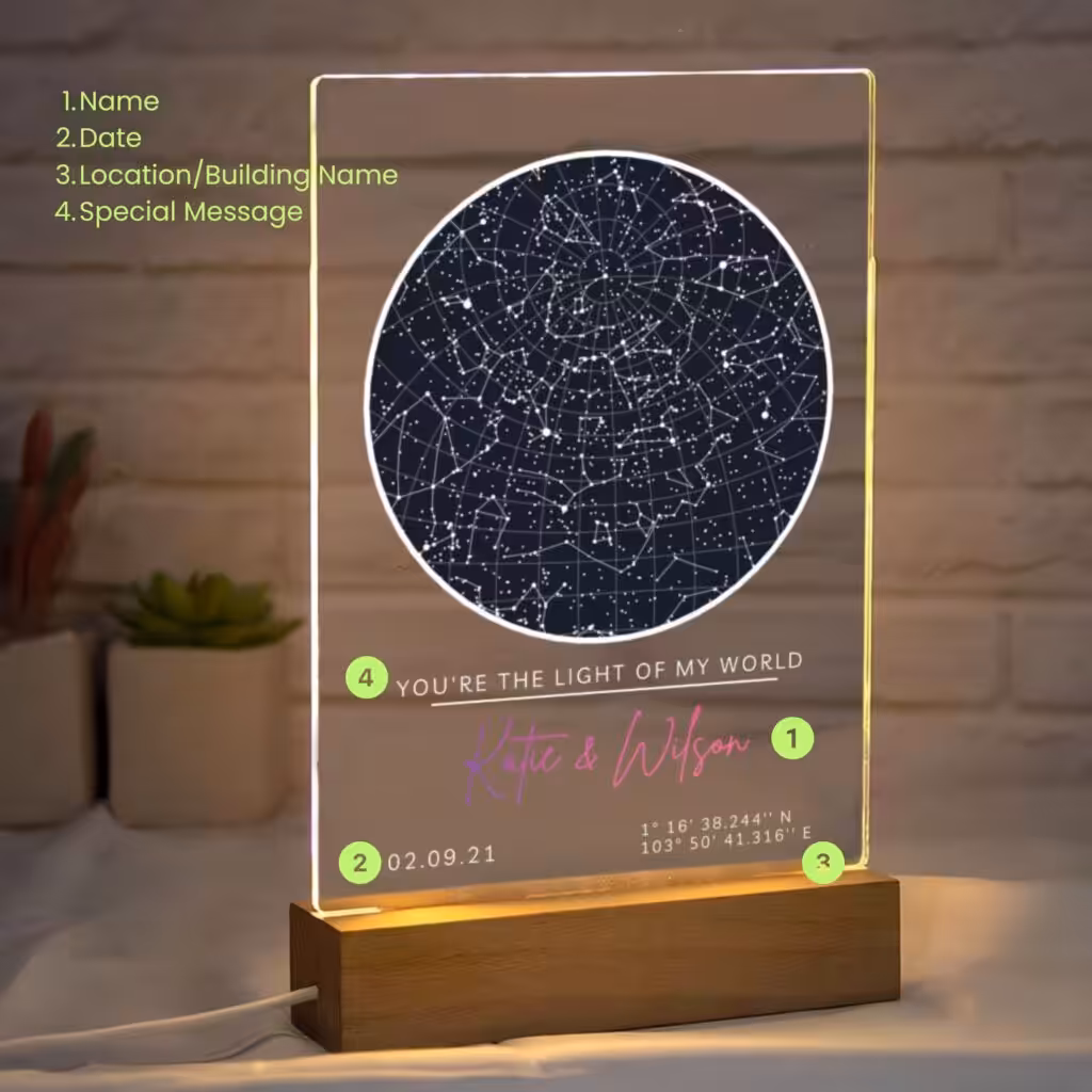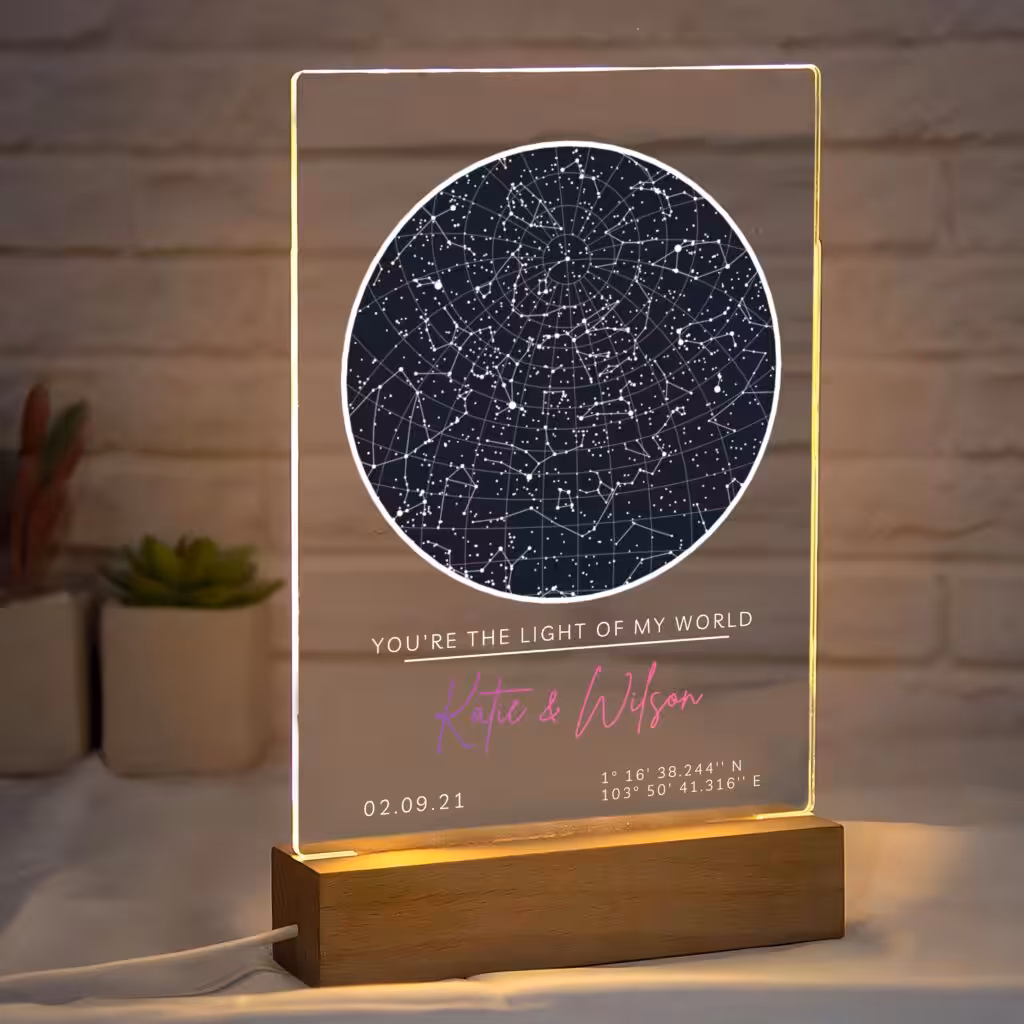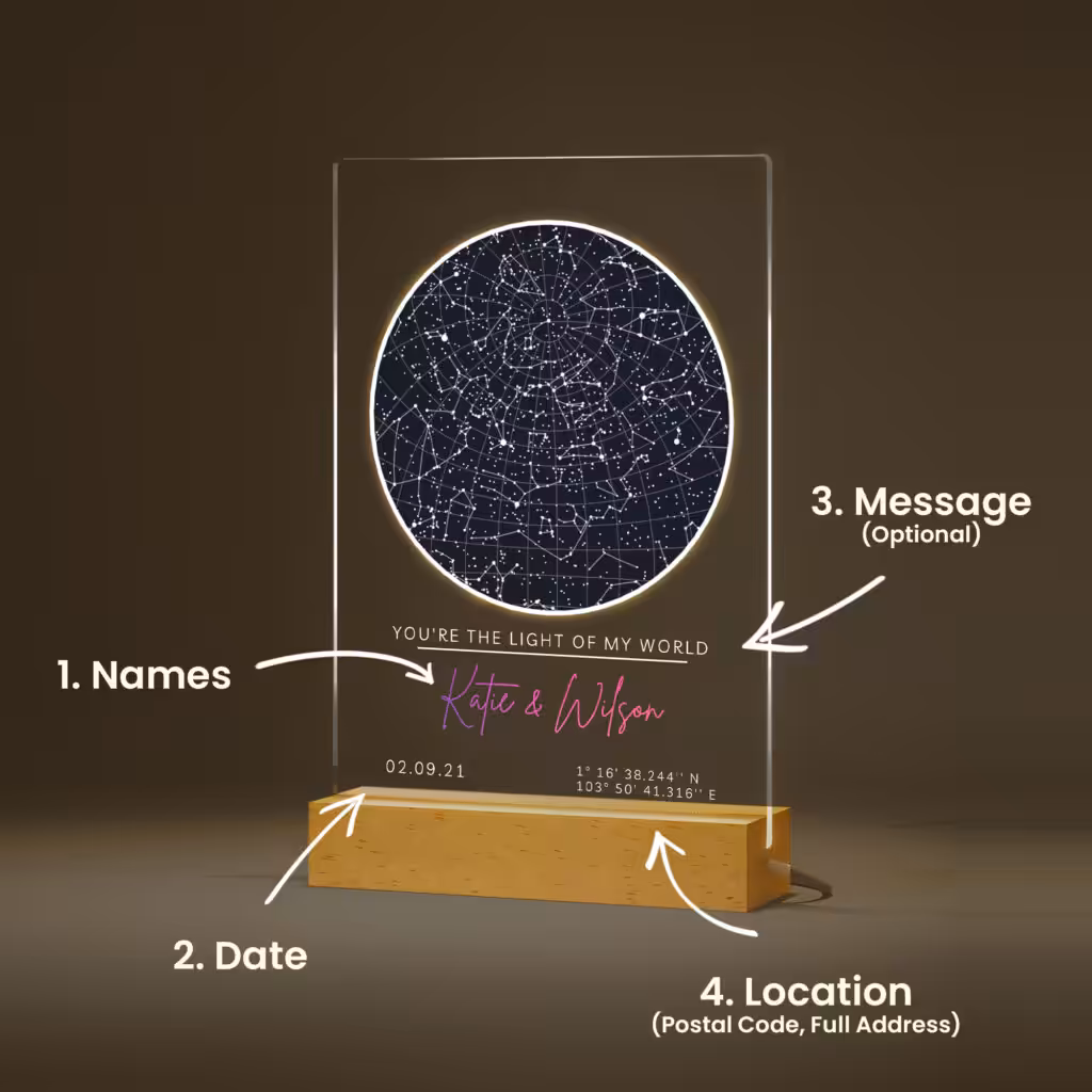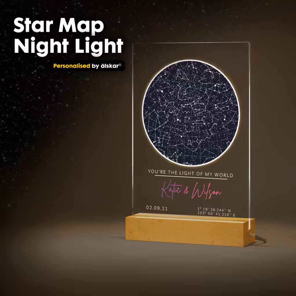 Make your anniversary unforgettable with a Personalised Star Map on Night Light and let the stars whisper the story of your love for generations to come.